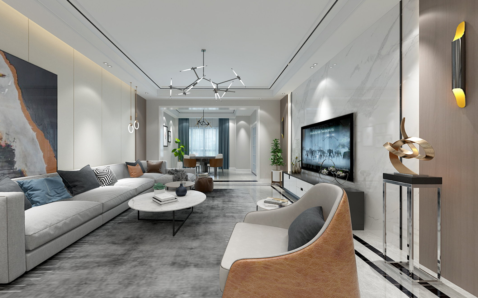 現代風格的家具強調功能性,擁有強烈的色彩對比、簡單流暢的線條,前衛(wèi)又時尚。沙發(fā)選了橄欖綠,溫馨又舒適,原木風墻面和通鋪地...[ 了解詳情 ]